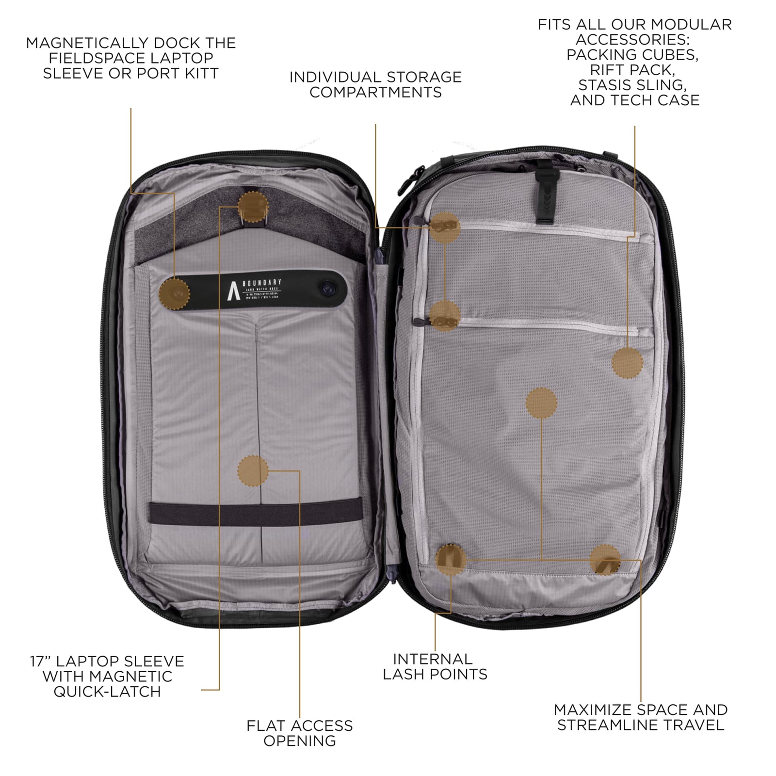 - Works with our modular accessories: Packing Cubes, Rift Pack, Tech Case, and more.