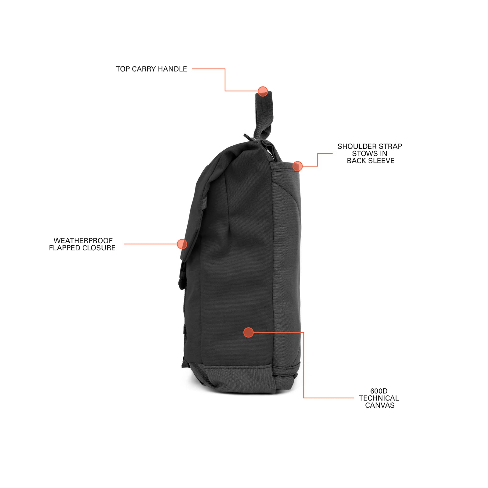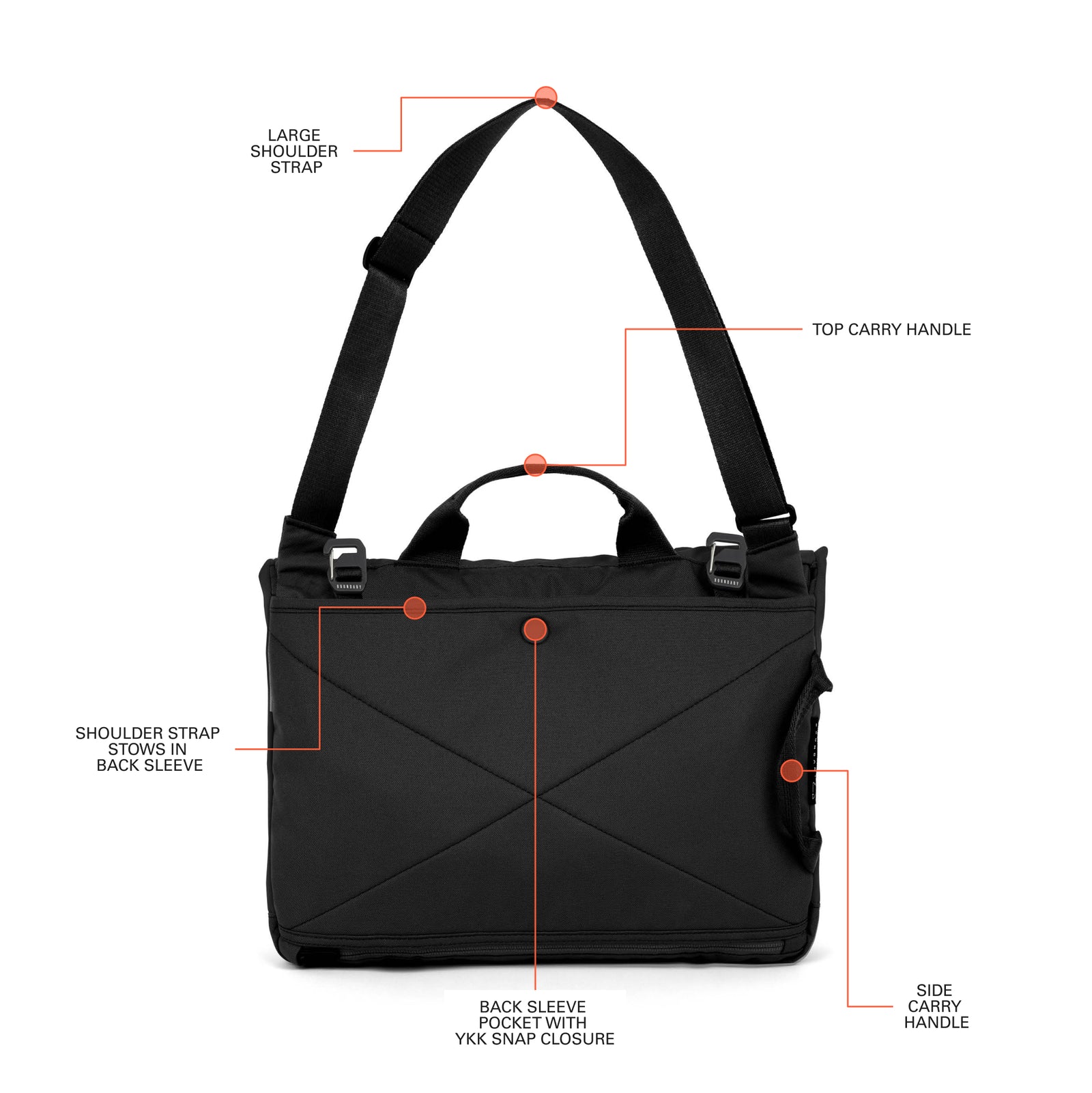 Innovating for the future includes minimizing environmental impact. The Rennen Shoulder Bag is made from 74% recycled materials, including our exclusive RE-3™ fabric lineup: